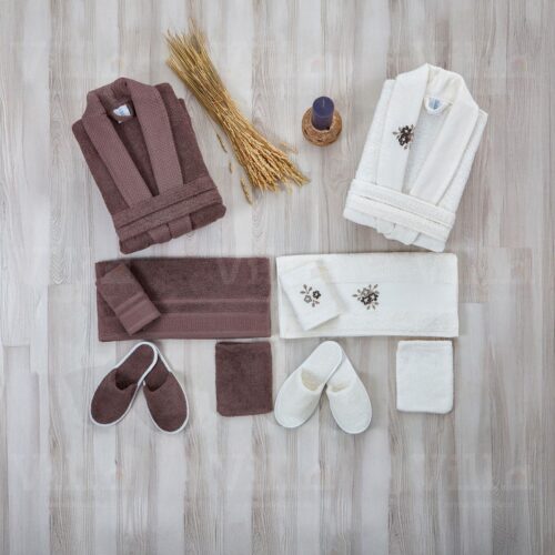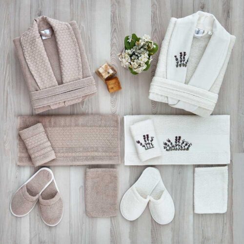طقم ارواب حمام 10 قطع روب حمام عدد 2 بشكير مقاس 50 30 سم عدد 2 منشفة مقاس 50 90 سم عدد 2 ليفة حمام عدد 2 كيس لافندر عدد 2