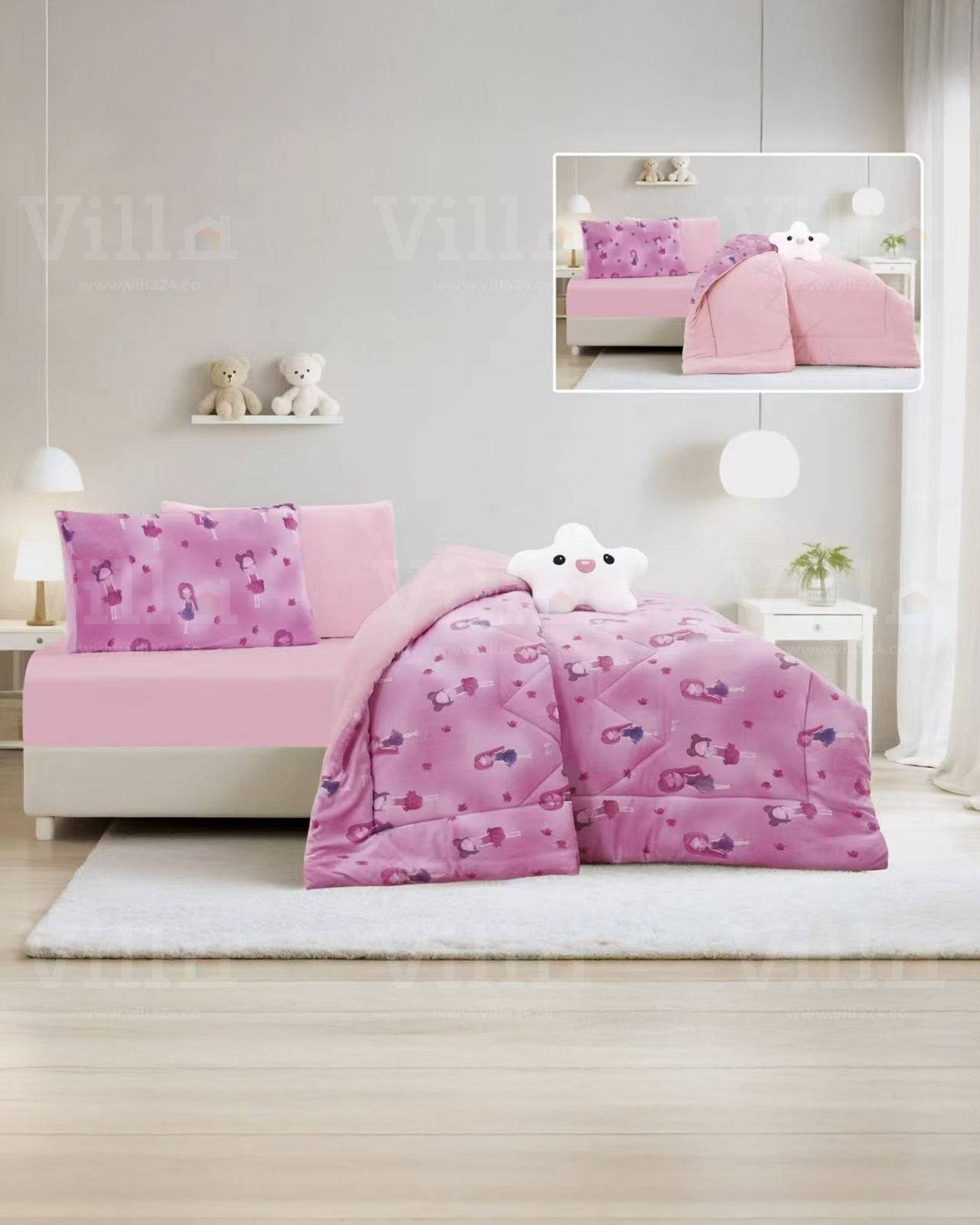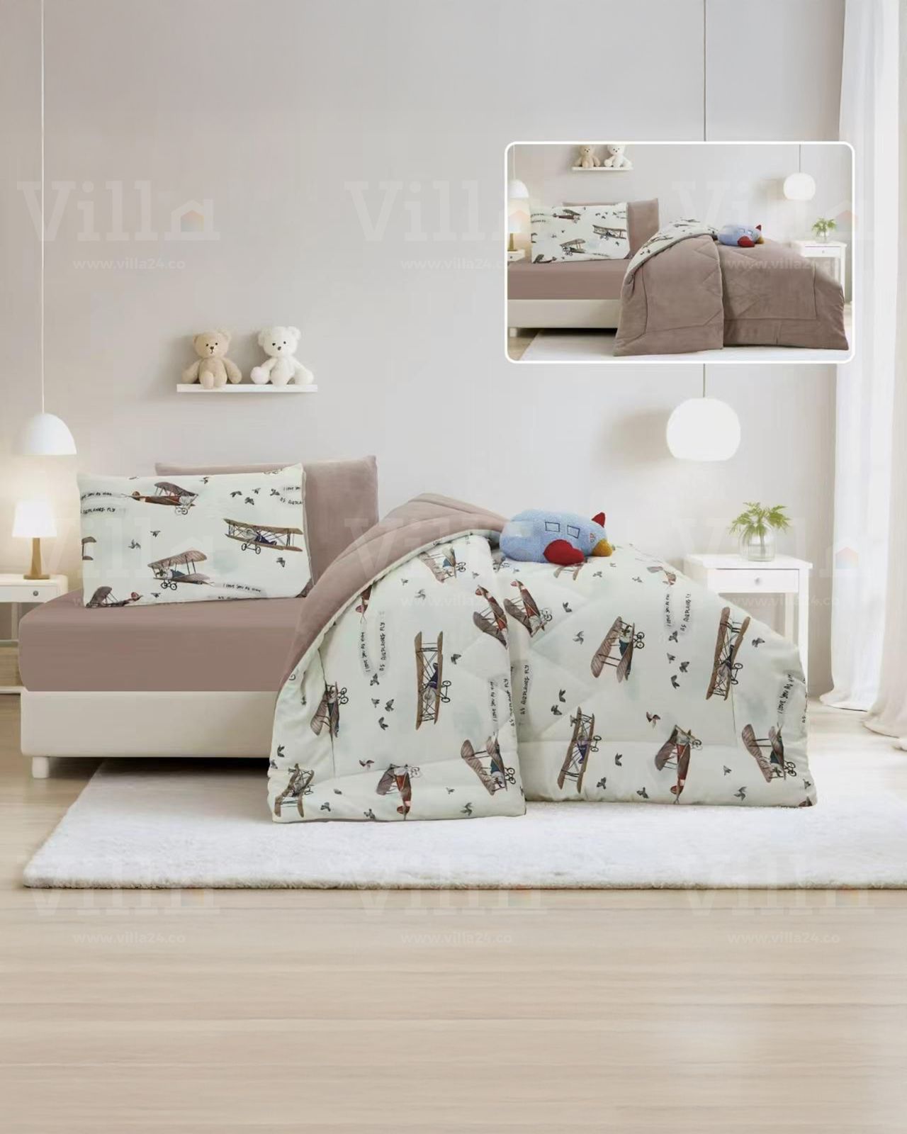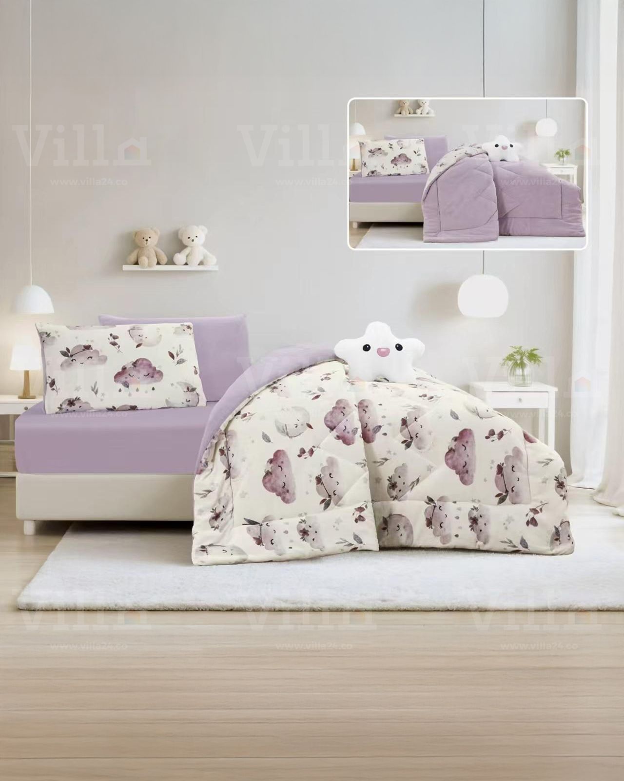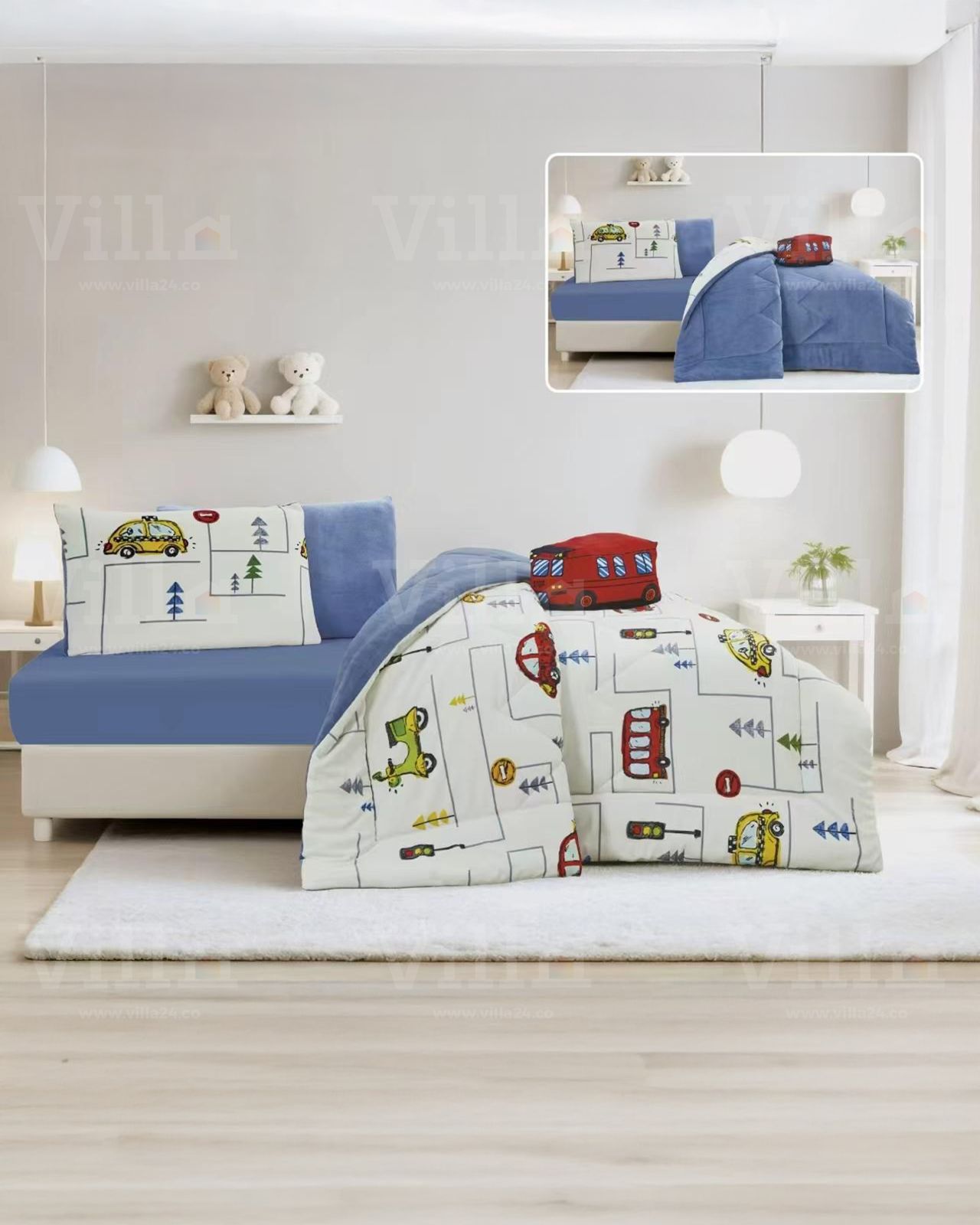 طقم لحاف مفرد ونص 5 قطع LEO غطاء سرير 170*220 سمملف فرشة 110*200+25 سممخدة ديكور 50*70 سممخدة نوم 50*70 سملعبة 40*40