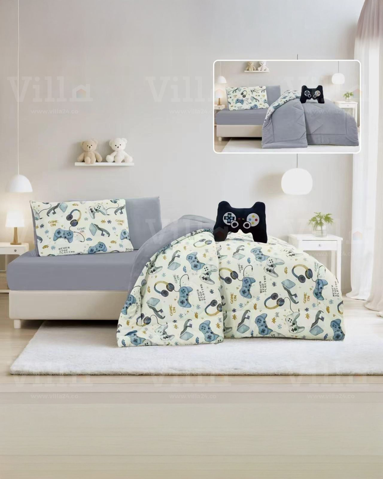 طقم لحاف مفرد ونص 5 قطع LEO غطاء سرير 170*220 سم ملف فرشة 110*200+25 سم مخدة ديكور 50*70 سم مخدة نوم 50*70 سم لعبة 40*40